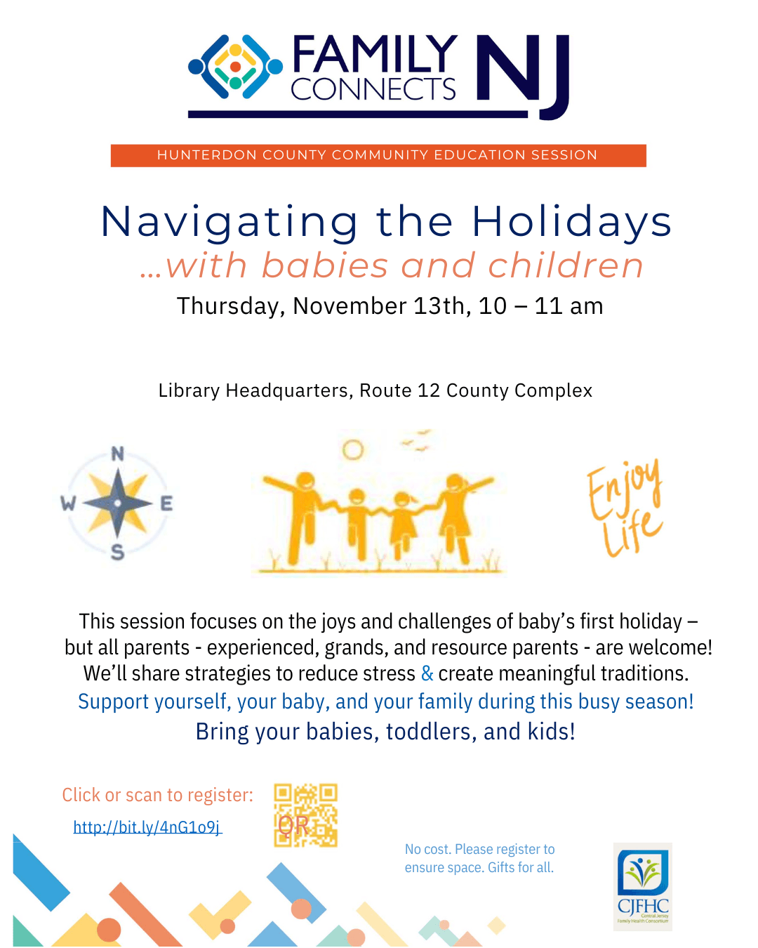 This session focuses on the joys and challenges of baby’s first holiday – but all parents - experienced, grands, and resource parents - are welcome! We’ll share strategies to reduce stress & create meaningful traditions.